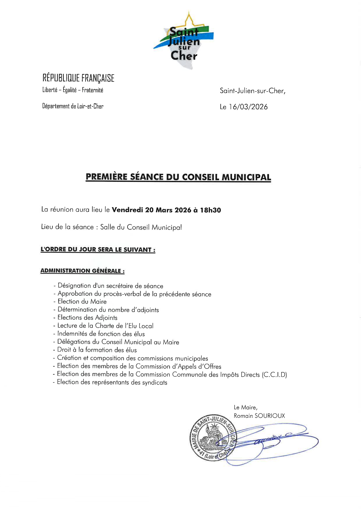 PREMIERE SEANCE DU CONSEIL MUNICIPAL